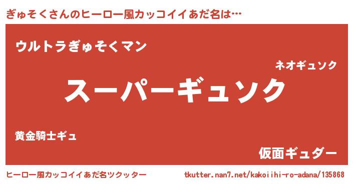 | 男性向けラノベタイトル風あだ名 | 『ぎゅそくの憂鬱』『魔弾の王とぎゅそく』 |