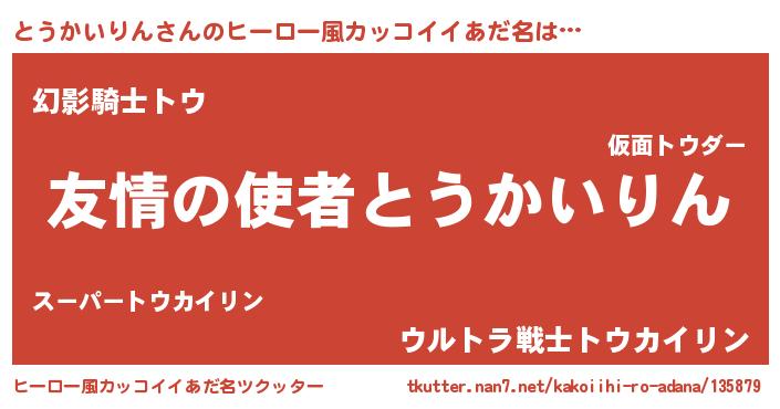 | 男性向けラノベタイトル風あだ名 | 『トウカイリンスレイヤー』 |