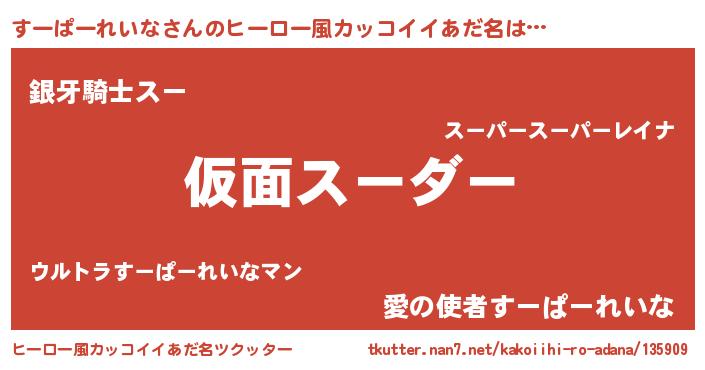 すーぱーれいなさんのヒーロー風カッコイイあだ名をツクッター!
