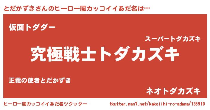 | 意味不明あだ名 | 『自称とだかずき』『永久保存とだかずき』 |