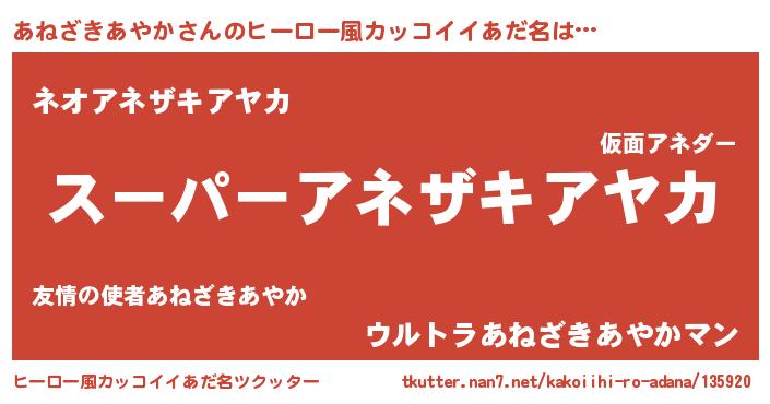 | ヘコむあだ名 | 『あねふぇ~』『あねざきあやか(遠い目)』 |