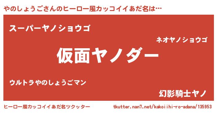 | 男性向けラノベタイトル風あだ名 | 『この素晴らしい世界にやのしょうごを!』 |