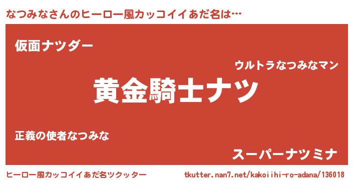 | 女子向けラノベタイトル風あだ名 | 『なつみなは平凡を望む』 |