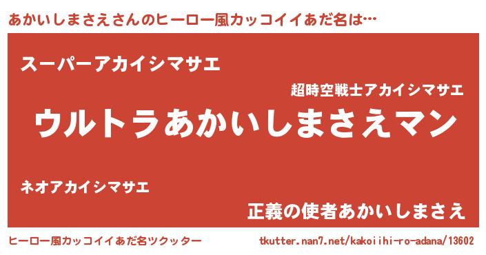 | 意味不明あだ名 | 『あかいしまさえフォーエバー』 |