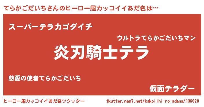 | 料理風あだ名 | 『てらかごだいちとほうれんそうの和風グラタン』 |