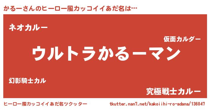 | 男性向けラノベタイトル風あだ名 | 『うちの娘の為ならば、俺はもしかしたらかるーも倒せるかもしれない。』 |