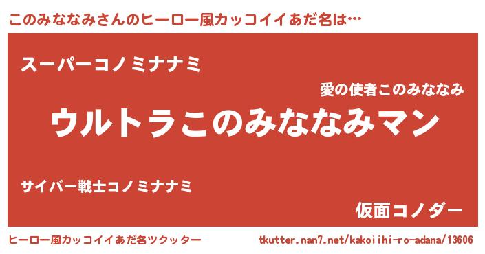 | 女子向けラノベタイトル風あだ名 | 『このみななみの雑貨屋さん』 |