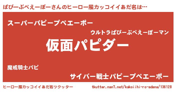 | 女子向けラノベタイトル風あだ名 | 『悪役ぱぴーぷぺえーぽーに転生したようですが、知った事ではありません』 |