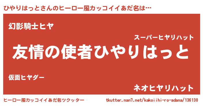 | 男性向けラノベタイトル風あだ名 | 『はたらくひやりはっとさま!』 |