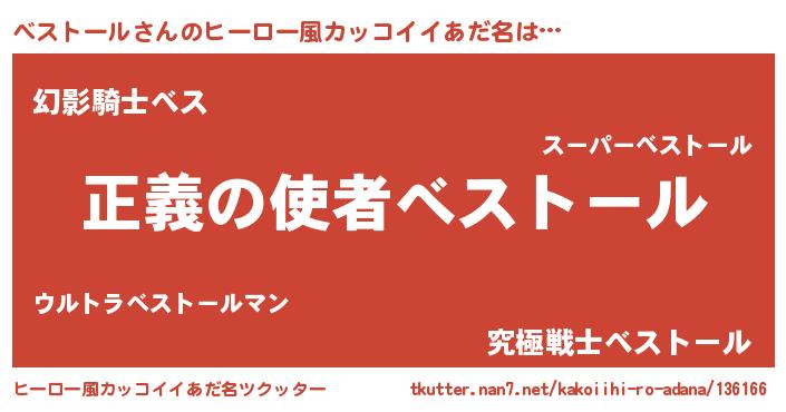 | 男性向けラノベタイトル風あだ名 | 『緋弾のベストール』 |
