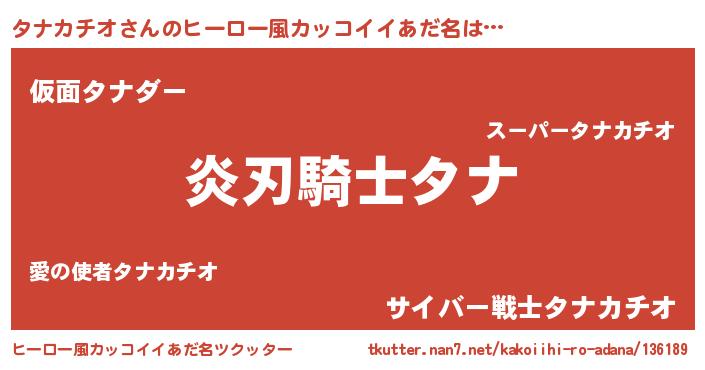 | ポケモン風あだ名 | 『タナゴンZ』『ヒタナカチオ』 |