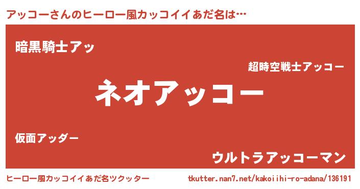 | 意味不明あだ名 | 『永久保存アッコー』『自称アッコー』 |