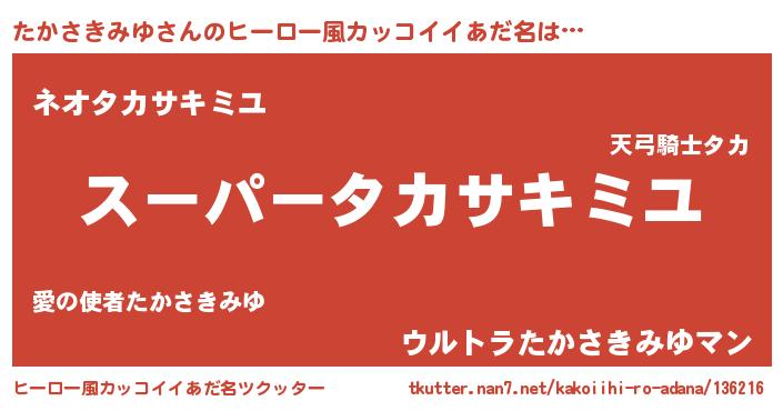 | 恥ずかしいあだ名 | 『プリティーたかさきみゆ』『たかちん』 |