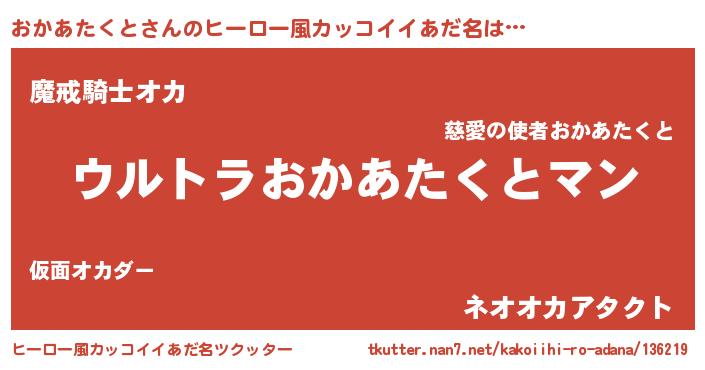 | ポケモン風あだ名 | 『オカアダネ』『ヒオカアタクト』 |