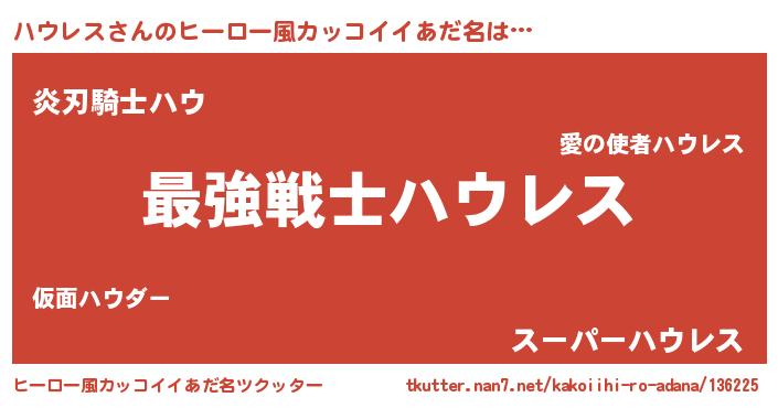 | ヘコむあだ名 | 『ハウを』『ハウにゅー』『豆乳』 |