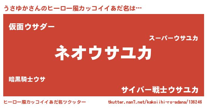 | 男性向けラノベタイトル風あだ名 | 『うさゆかという概念が存在しない退屈な世界 』 |