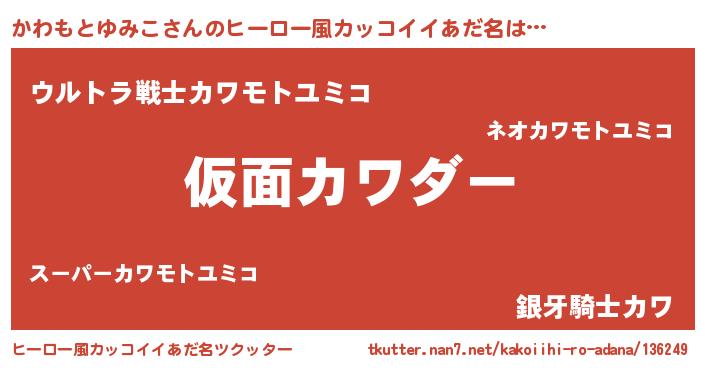 | 男性向けラノベタイトル風あだ名 | 『この素晴らしい世界にかわもとゆみこを!』 |