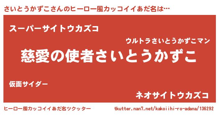 | 男性向けラノベタイトル風あだ名 | 『ノーゲーム・ノーサイトウカズコ』 |