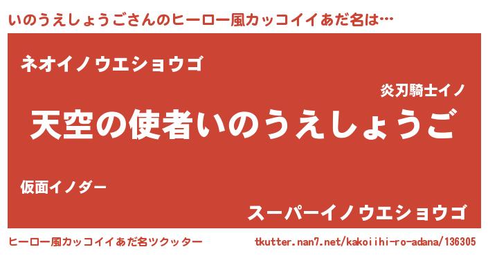 | ヘコむあだ名 | 『いのうえしょうご(笑)』『いのにゅー』 |