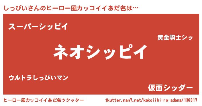 | 男性向けラノベタイトル風あだ名 | 『うちのしっぴいが世界を掌握している!』 |