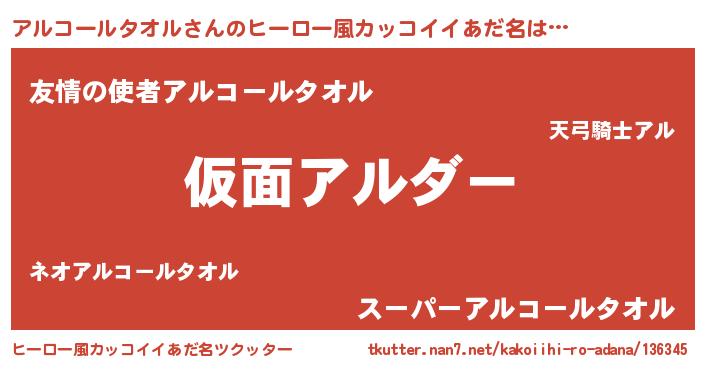 | 意味不明あだ名 | 『住所不定無職アルコールタオル(81歳)』 |