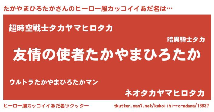 | ヘコむあだ名 | 『たかやまひろたか(小並感)』『たかお』 |