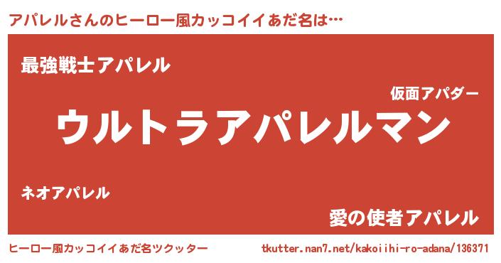 | ファンタジー風あだ名 | 『エターナルアパレルー』『ゼアパトゥ』 |