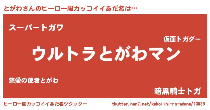 | 男性向けラノベタイトル風あだ名 | 『やはりとがわの青春ラブコメはまちがっている 』 |