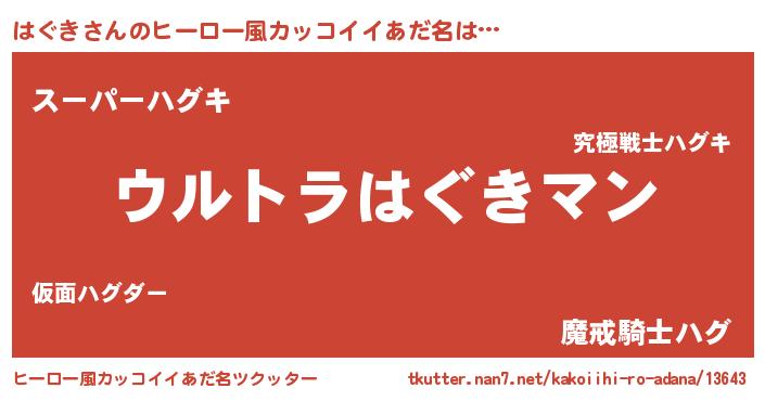 | ヘコむあだ名 | 『豆乳』『はぐにゅー』『はぐぷりん』 |