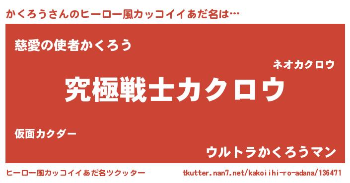 | 男性向けラノベタイトル風あだ名 | 『Re:かくろうから始める異世界生活』 |