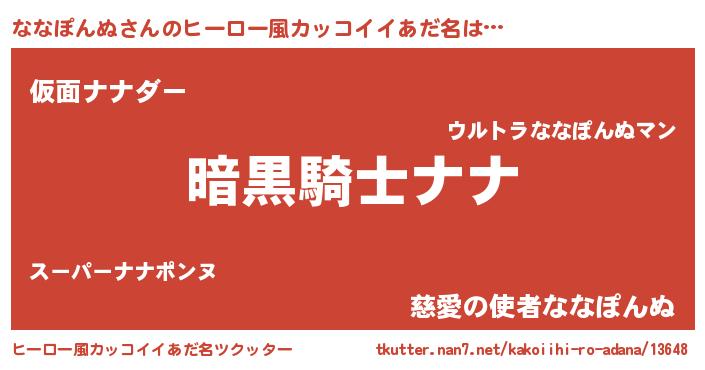 | 男性向けラノベタイトル風あだ名 | 『ダンジョンにななぽんぬを求めるのは間違っているだろうか』 |