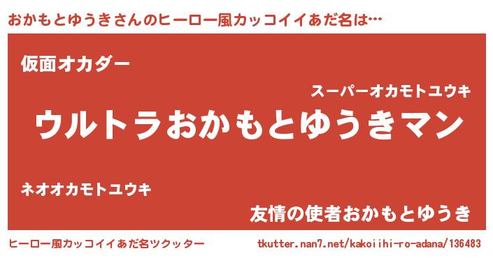 | 男性向けラノベタイトル風あだ名 | 『おかもとゆうき~年齢イコール彼女いない歴の魔法使い~』 |