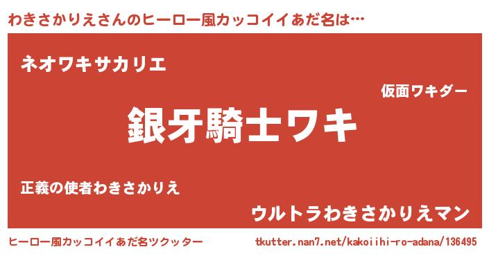 | ポケモン風あだ名 | 『ワキゴンZ』『ヒワキサカリエ』 |