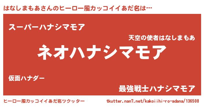 | 男性向けラノベタイトル風あだ名 | 『はなしまもあという概念が存在しない退屈な世界 』 |