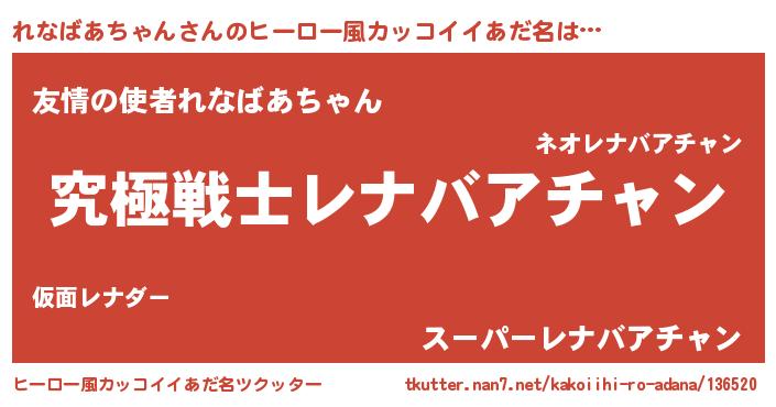 | 男性向けラノベタイトル風あだ名 | 『うちのれなばあちゃんが世界を掌握している!』 |