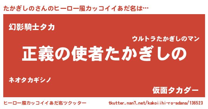 | ポケモン風あだ名 | 『タックウザ』『ヒタカギシノ』 |