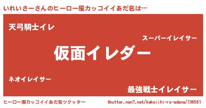 | 男性向けラノベタイトル風あだ名 | 『いれいさー~年齢イコール彼女いない歴の魔法使い~』 |