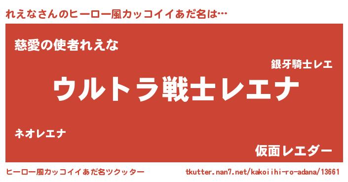 | 男性向けラノベタイトル風あだ名 | 『レエナスレイヤー』『魔弾の王とれえな』 |