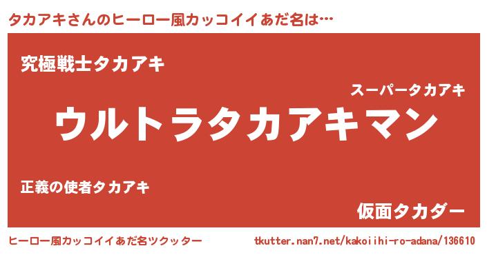 | ファンタジー風あだ名 | 『エターナルタカアキー』『ゼタカトゥ』 |