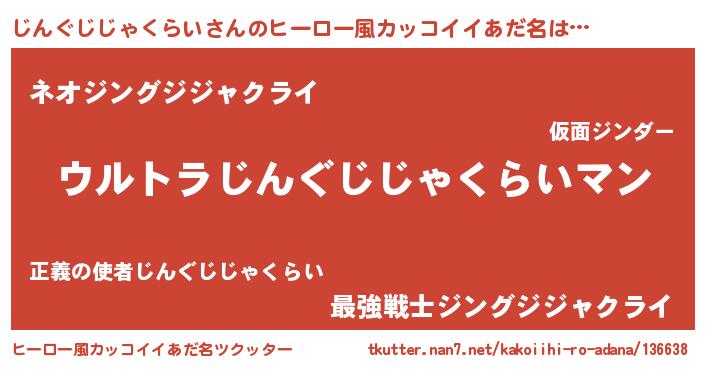 | 男性向けラノベタイトル風あだ名 | 『やはりじんぐじじゃくらいの青春ラブコメはまちがっている 』 |