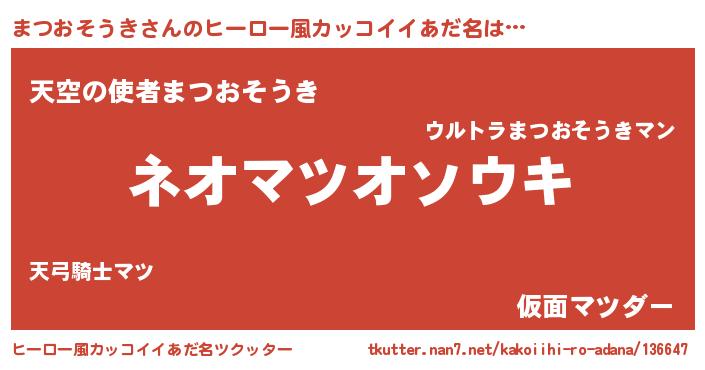 | 男性向けラノベタイトル風あだ名 | 『まつおそうきという概念が存在しない退屈な世界 』 |