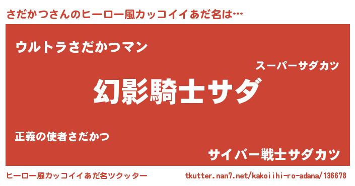| 男性向けラノベタイトル風あだ名 | 『さだかつの嫁は女の子じゃないと思った?』 |