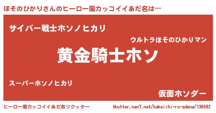| ポケモン風あだ名 | 『ヒホソノヒカリ』『ホソセウス』 |