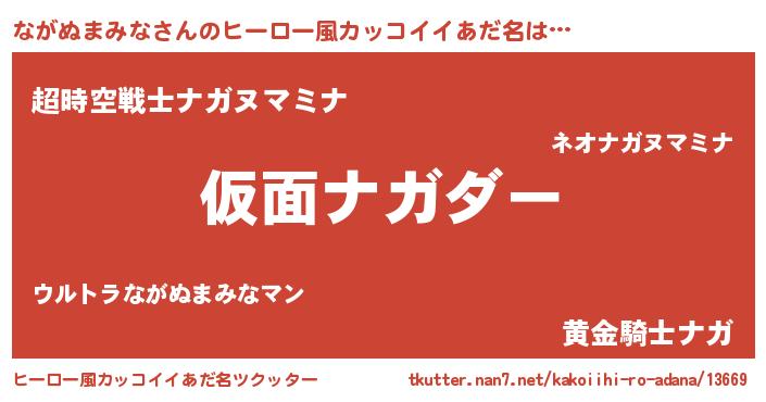 | 男性向けラノベタイトル風あだ名 | 『この素晴らしい世界にながぬまみなを!』 |