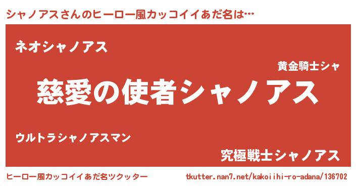 シャノアスさんのヒーロー風カッコイイあだ名をツクッター!