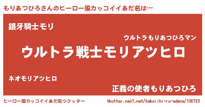 | 男性向けラノベタイトル風あだ名 | 『魔法科高校のもりあつひろ』 |