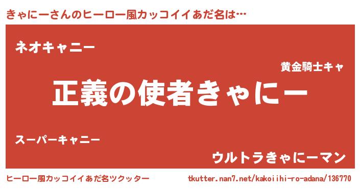 | 男性向けラノベタイトル風あだ名 | 『おまえをオタクにしてやるから、俺をきゃにーにしてくれ! 』 |