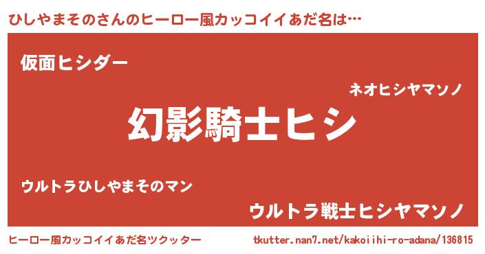 | ファンタジー風あだ名 | 『カークヒシラー』『ファントムヒシス』 |