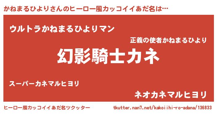 | ポケモン風あだ名 | 『ヒカネマルヒヨリ』『カネマダネ』 |