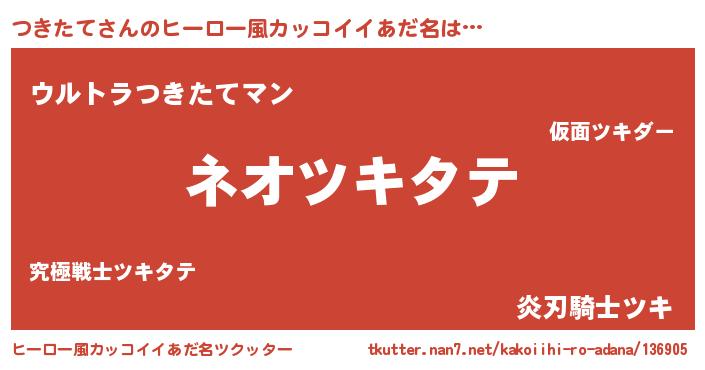 つきたてさんのヒーロー風カッコイイあだ名をツクッター!